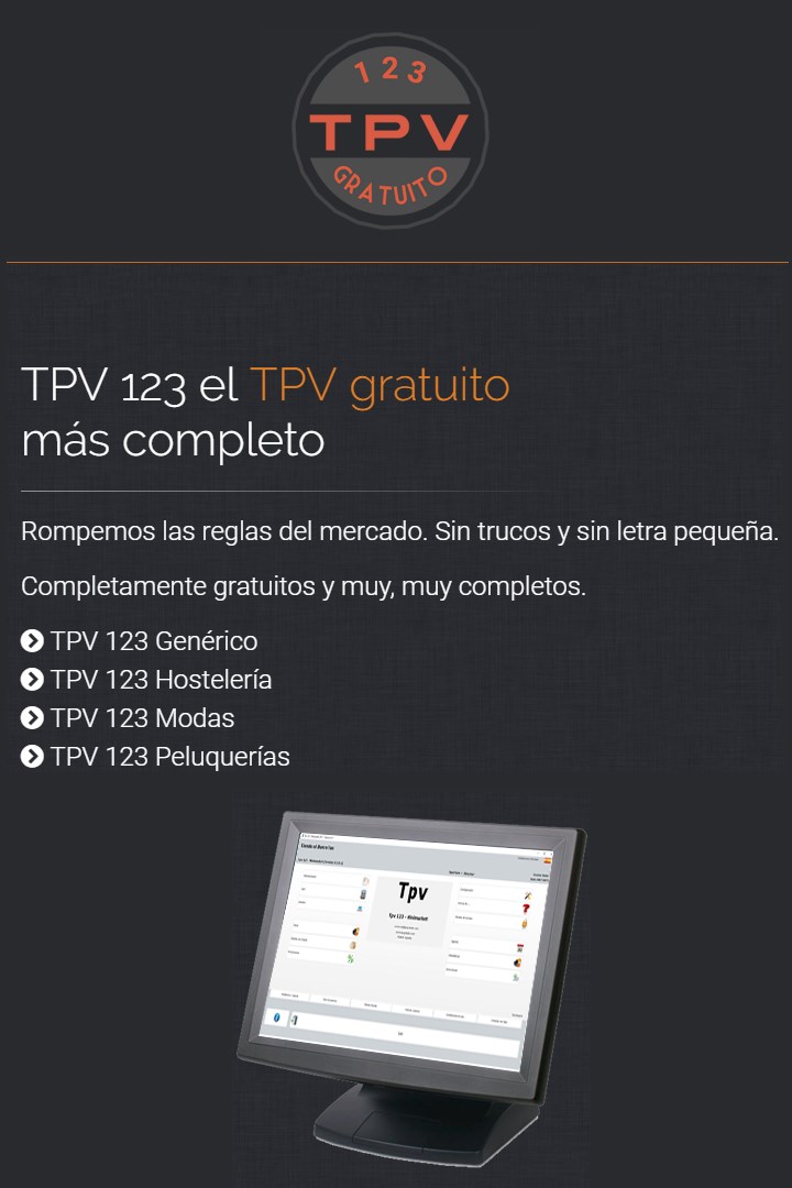 Si buscas un programa sencillo y manejable, éste es el tuyo. TPV 1HOSTELERÍA = Programa para restaurantes, Cafeterías, descarga GRATUITA. TPV 1MINIMARKET = Programa con diseño vanguardista, para. Activación TPV 1Copas 00:Activación TPV 1. Tpv 1Estetica y Spa Gratuito.